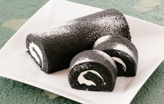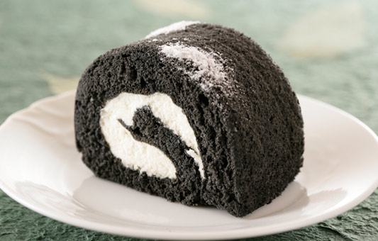 ここで「プラージュ」でしか味わえない特別な逸品!生地に竹炭を練りこんだ「香炭ロール」!